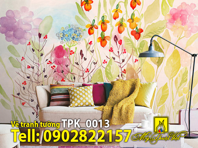 Vẽ tranh tường phòng khách