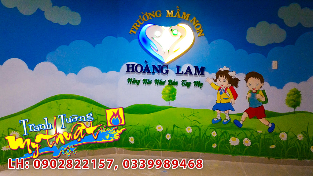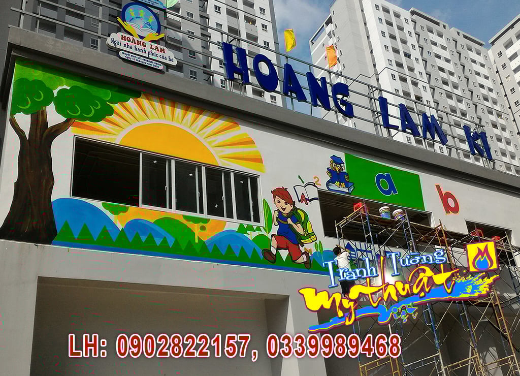 Nghệ thuật vẽ tranh tường mầm non không chỉ giúp làm đẹp không gian mà còn là phương pháp giáo dục trực quan, kích thích sự sáng tạo của trẻ nhỏ. Dự án vẽ tranh tường tại Trường Mầm Non Hoàng Lam (Chung cư Hoàng Quân - HQC Plaza, Bình Chánh) là minh chứng cho sự kết hợp hoàn hảo giữa không gian sư phạm và hội họa sắc màu.