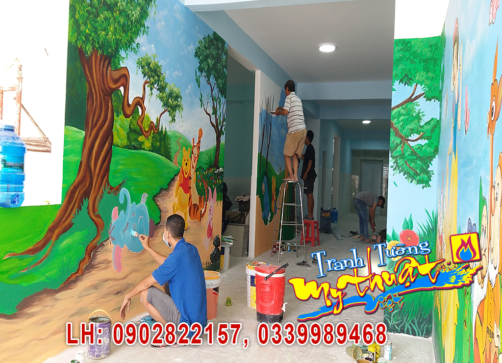 thi-cong-ve-tranh-tuong-mam-non