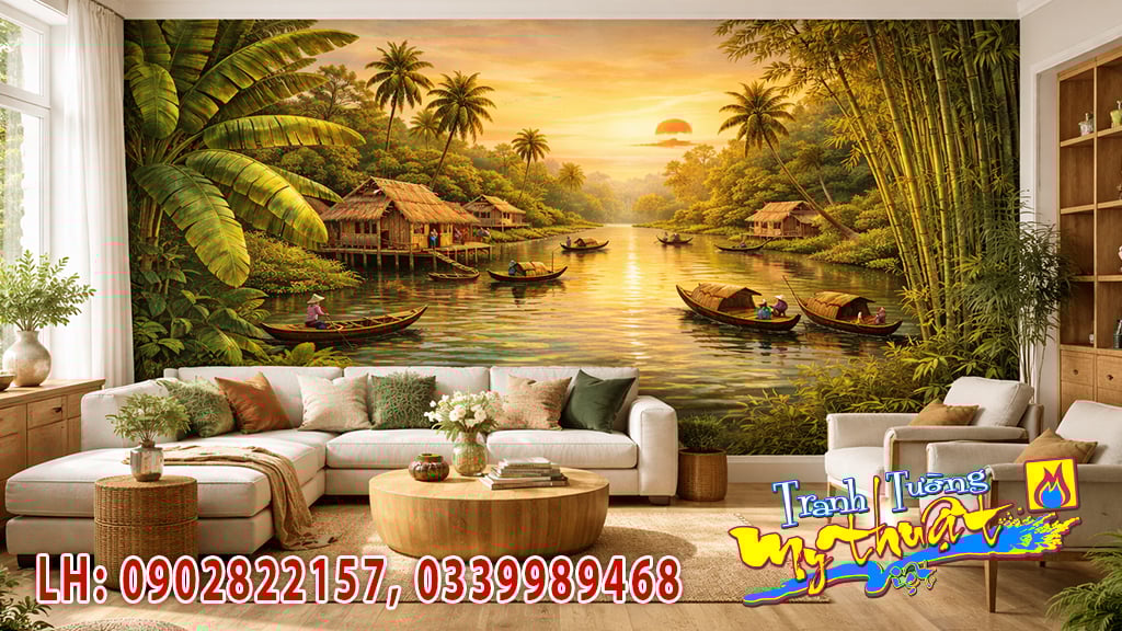 Vẽ Tranh Tường Phòng Khách-Miền Sông Nước Tại Phước Long-Quận 9