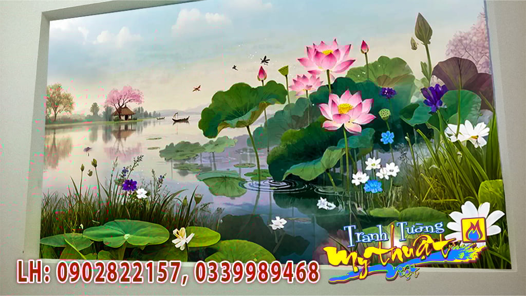 Hoa sen là biểu tượng của sự thuần khiết và phong thủy tốt lành. Những bức tranh sen Quận 9 khổ lớn tại phòng khách không chỉ làm đẹp không gian mà còn mang lại vượng khí cho gia đình.