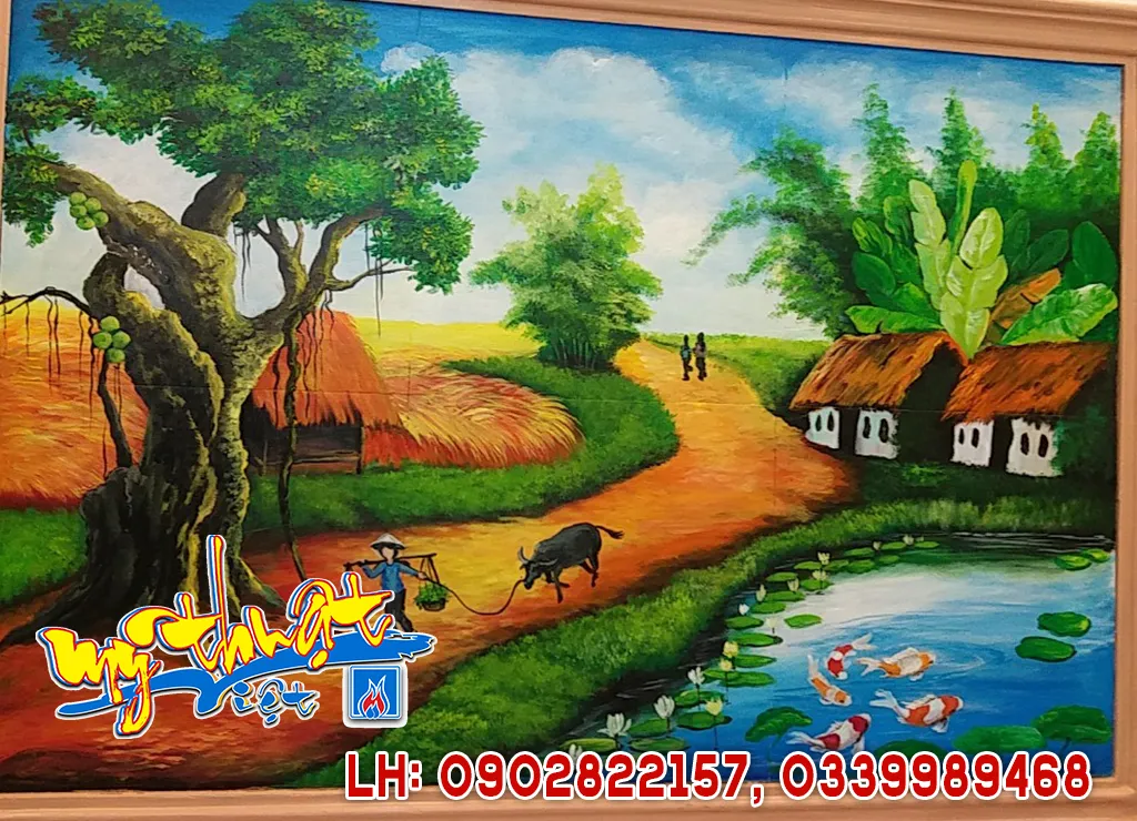 Vẽ Tranh Tường 3D Nghệ Thuật, Tranh phong thủy làng quê. tranh phong cảnh.