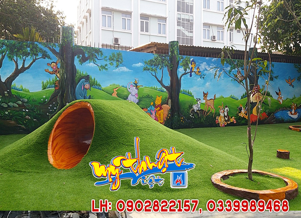 Vẽ Tranh Tường 3D Nghệ Thuật, Trường Mầm Non Củ Chi , sân trường rộng rãi thoáng mát, kết hợp vẽ tranh tường trang trí như không gian thục thật sống động...Chắc chắn sẽ làm các Bé thích mê luôn...