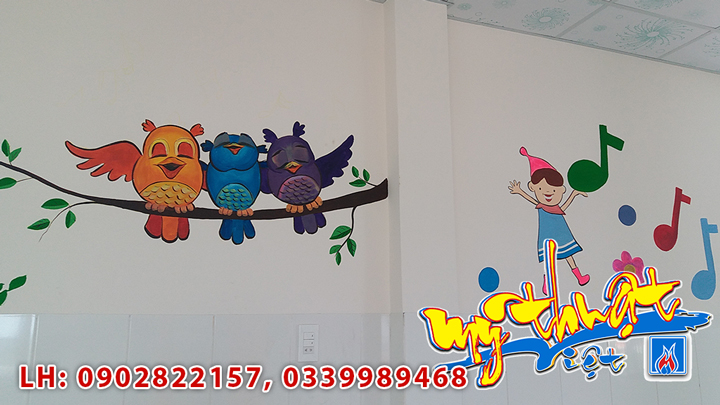 – Tranh tường đẹp, bền, an toàn với sức khỏe của bé và cô (Sơn Arcrylic an toàn với môi trường và con người)