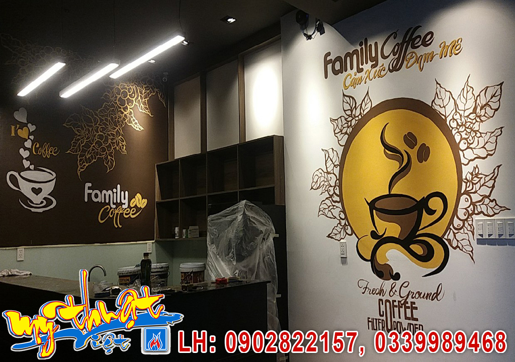 Vẽ tranh tường nghệ thuật .trang trí quán caphe Bình Thạnh
