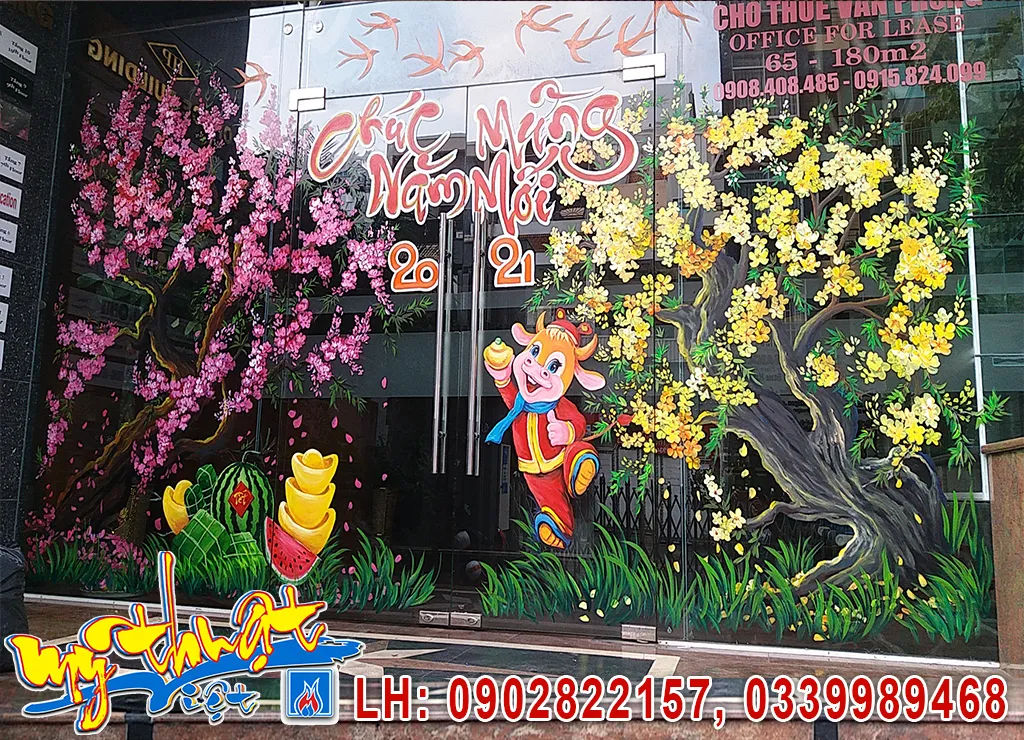 Vẽ tranh tường tranh trang trí Tết 2021 VĂN PHÒNG CHO THUÊ quận 1